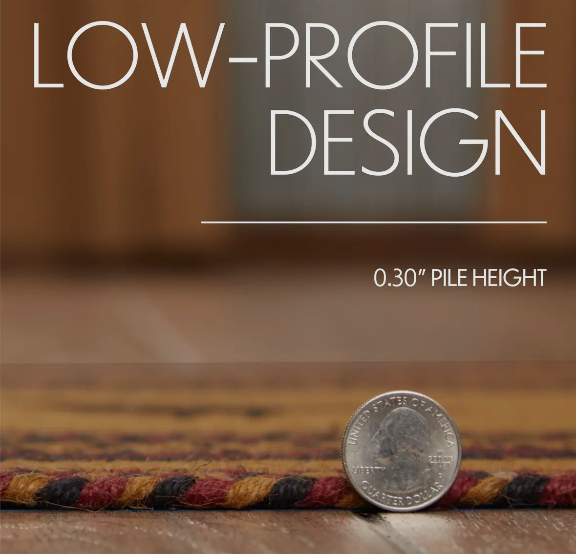 Primitive Rug - Our Heritage Farms Jute 36x60 inch Rug features alternating solid and mixed braids in a warm primitive color palette.