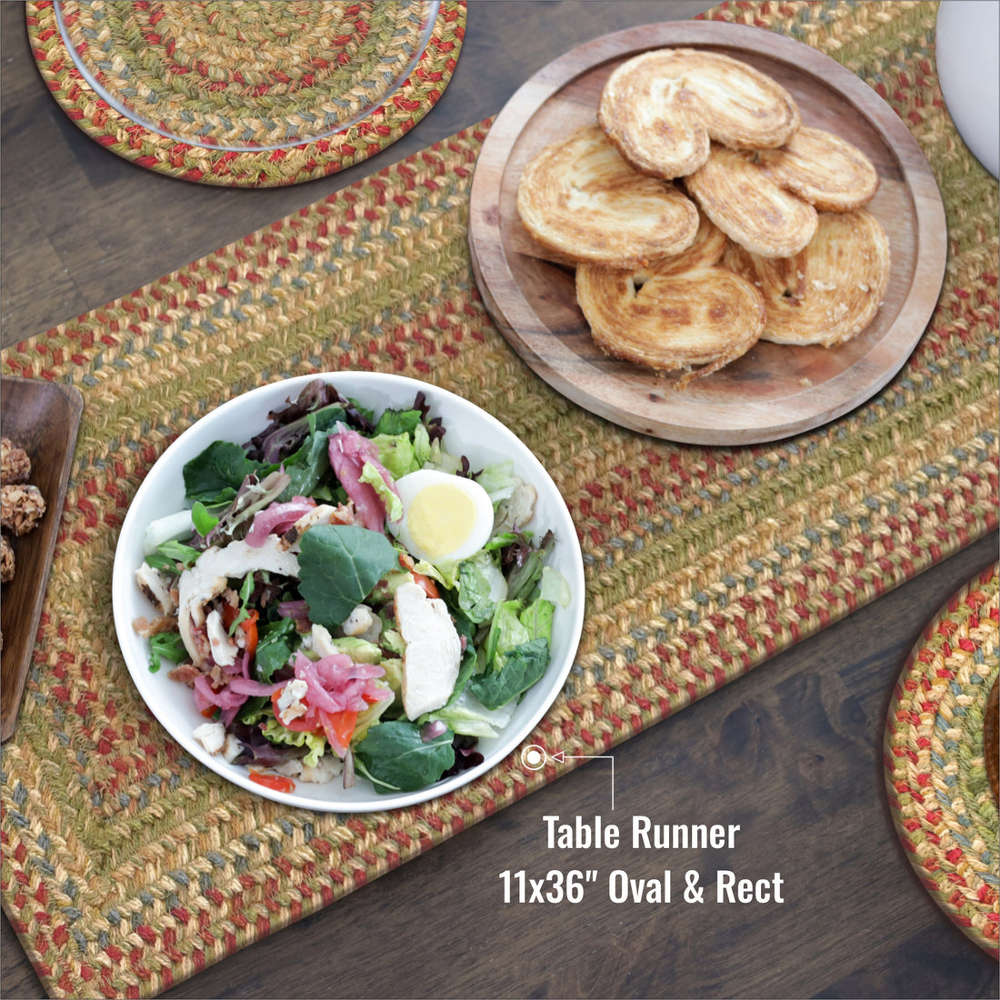 Durable, reversible, and eco-friendly, this braided runner protects your surfaces while adding handcrafted texture and color. The compact 36-inch length makes it perfect for smaller dining tables, sideboards, or layered centerpieces — creating a cozy farmhouse look that’s beautiful year-round.