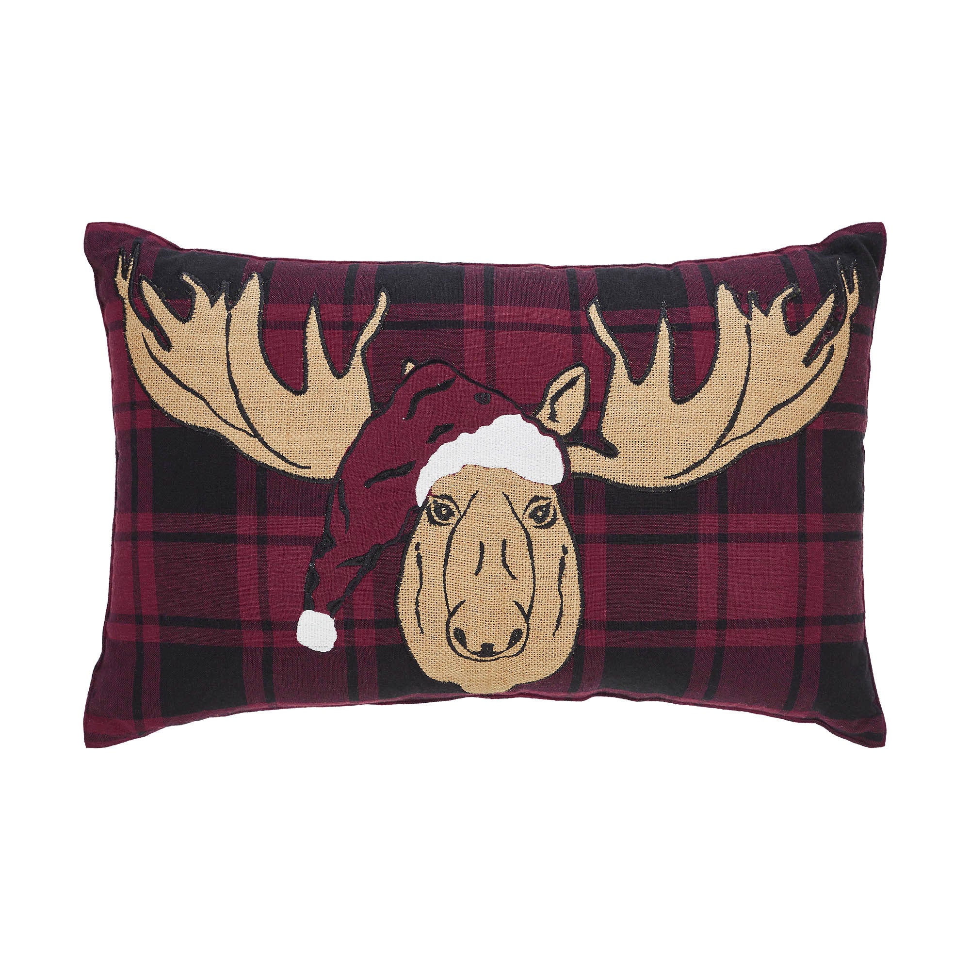 Size GuideAdd rustic holiday cheer to your home with this Christmas accent pillow. The Cumberland Holiday Moose Pillow measures 14 by 22 inches. The filled pillow features a woodsy red and black plaid for a backwoods feel. A whimsical design featuring an applique moose wearing a santa hat creates a focal point that is sure to start conversations. The cozy home accessory reverses to black and red plaid for a casual country cabin style. Spot clean as needed. Coordinates with the Cumberland Collection by VHC for rustic country style for your whole home.