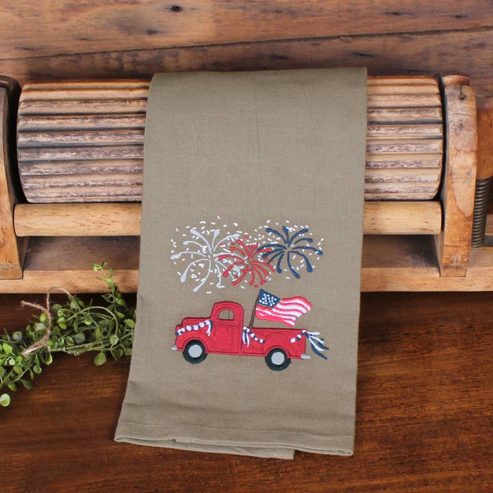 Size GuideWhether you're celebrating a national holiday or simply want to showcase your love for the country, this towel is an ideal choice. The new American Parade Towel features an iconic parade motif delicately embroidered with great details that is ideal as a gift or to add a unique accent to home decor. - Measures 18" x 28" - Made of 100% Cotton - Features oat towel with red and blue embroidered details - Machine wash cold gentle cycle or spot clean