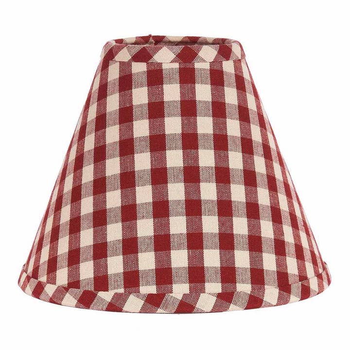 Introducing the Heritage House Check Lampshade, a charming addition to any cozy space. This 6" candle clip lampshade is crafted with everyday cotton in a warm barn red and nutmeg color palette, perfect for adding a touch of country or primitive style to your home. The self-bias trimmed edges and side-stitched detailing down the body showcase the meticulous craftsmanship and attention to detail. Measuring 2.5" across the top, 6" at the bottom, and 4.5" high, this lampshade is designed to fit seamlessly onto your favorite candle lamp. Its classic check pattern brings a timeless appeal, making it an ideal choice for enhancing the ambiance of your living room, bedroom, or any space that calls for a touch of rustic elegance. Transform your lighting with this delightful piece that combines functionality with a nod to heritage design.