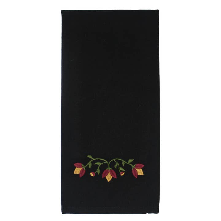 Size GuideAdd a touch of traditional charm to kitchens or baths with the new Primitive Borders Towel. Made from soft cotton, the towel features a simple yet elegant design versatile for many home decor styles. Its eye-catching design is not only decorative but also adds a warm and welcoming feel to the home. - Measures 18" x 28" - Made of 100% Cotton - Features detailed applique design on black towel - Machine wash cold gentle cycle or spot clean