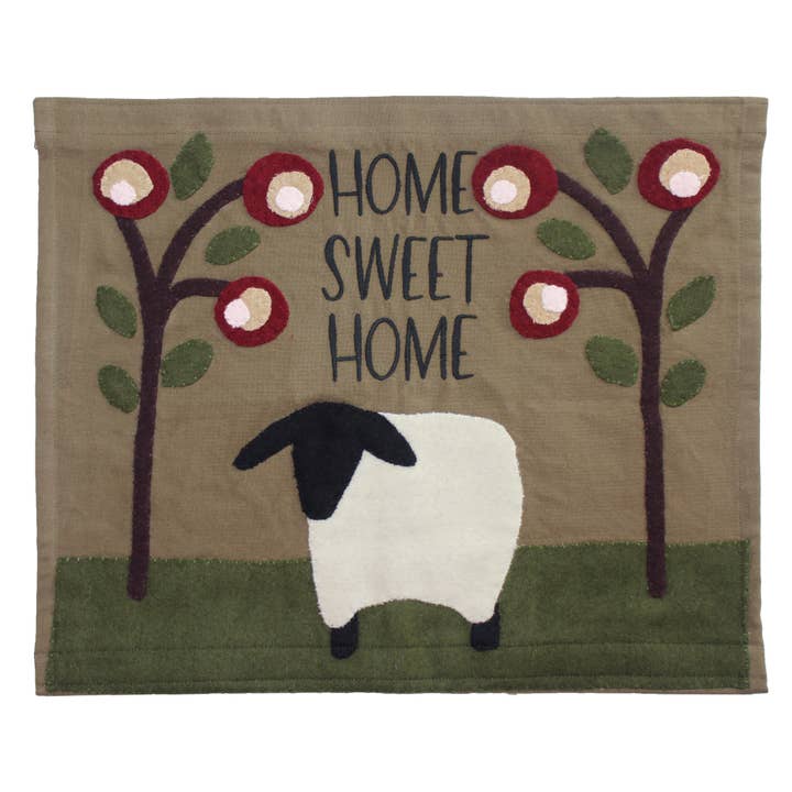 Size GuideThe new Sheep in the Grove Pennant celebrates the comfort of home with a heartwarming design. This beautifully crafted piece is designed to bring a unique accent to the front door or inside home decor when paired with our Arch Metal Hanger (sold separately). - Measures 19.5" x 16" - Made of solid nutmeg cotton fabric with wool felt appliques and cotton embroidered details - Spot clean - Velcro closures at top and bottom make it easy to attach to the Arch Metal Hanger Set