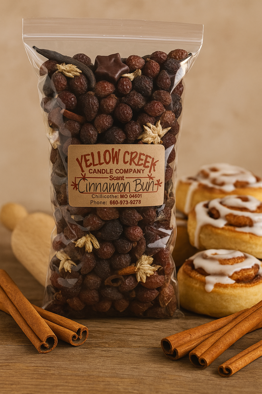 Size GuideBring the irresistible aroma of fresh-baked cinnamon rolls into your home with Cinnamon Bun Rosehips from Yellow Creek Candle Company. Each half-pound bag is filled with richly scented rosehips, blended with warm cinnamon spice and a sweet bakery fragrance that smells just like homemade cinnamon buns fresh from the oven.