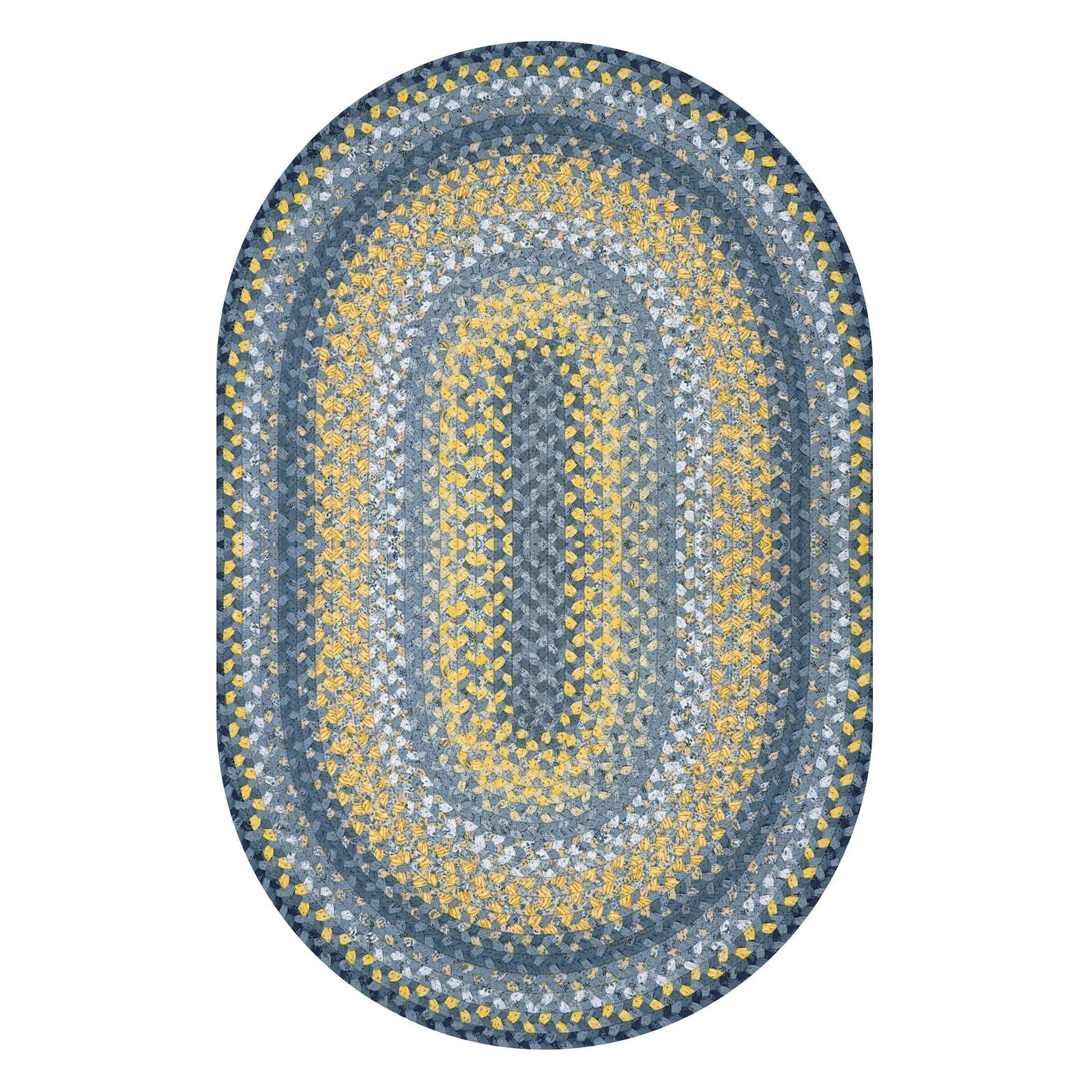 This warm, refreshing, and inviting rug captures the look of bright yellow flowers splashed across a brilliant blue sky. Classic beauty on the outside, durable construction on the inside. Our heirloom-quality rugs will be treasured for years. Our customers love the unique assortment of prints and colors in every exclusive Homespice design. Our Cotton braided rugs are crafted from soft 100% cotton printed fabric with a 100% recycled fiber inner core. The stunning printed fabrics are cut into strips for braid-making. Craftsmen carefully fold the fabric around the core so that only the printed outside shows. Homespice is a family-owned company that is committed to producing high-quality, handcrafted, unique products, and providing excellent customer service.