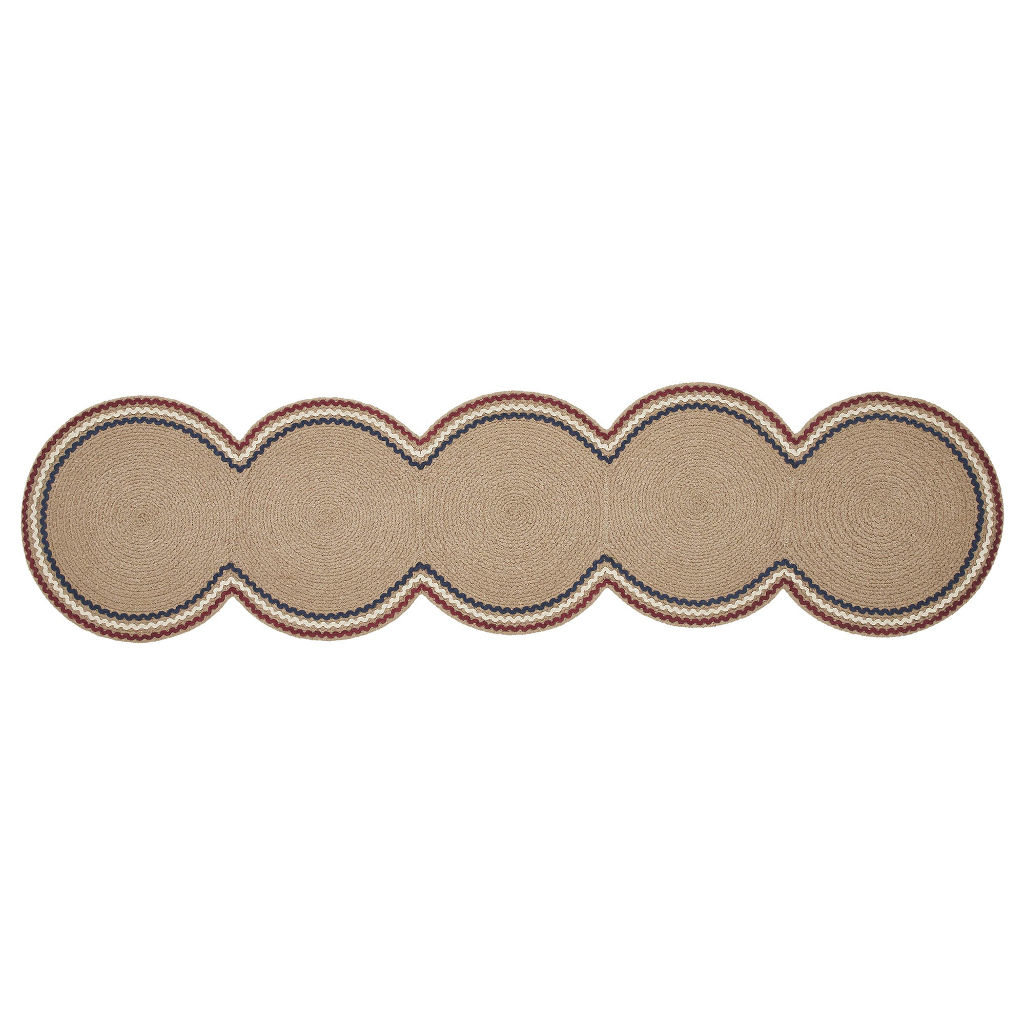 • Patriotic Ric Rac Design: Features a natural tan braided cotton base with three colorful rick rack bands in dark red, creme, and navy blue, adding a festive touch to your Independence Day table decor.