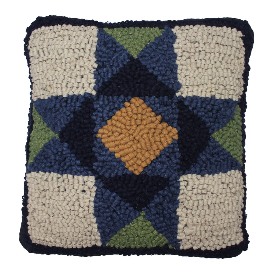 Size GuideThe Blue Quilt Square Wool Hooked Pillow features a timeless quilt inspired pattern in soothing shades of blue, accented with touches of green, gold, and cream. The rich hooked texture adds depth and warmth, making this pillow a beautiful accent for country, cottage, and traditional decor styles.
