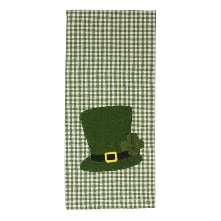 Size GuideThe new Leprechaun Hat towel features a delightful applique design on a cheerful gingham check, making it the perfect way to celebrate St Patrick's Day with festive flair. Both decorative and practical, this towel brings character and charm to home decor or makes a thoughtful seasonal gift. - Measures 18" x 28" - Made of 100% Cotton - Features Newbury Gingham Sage and Buttermilk Check Towel with applique design - Machine wash cold gentle cycle or spot clean