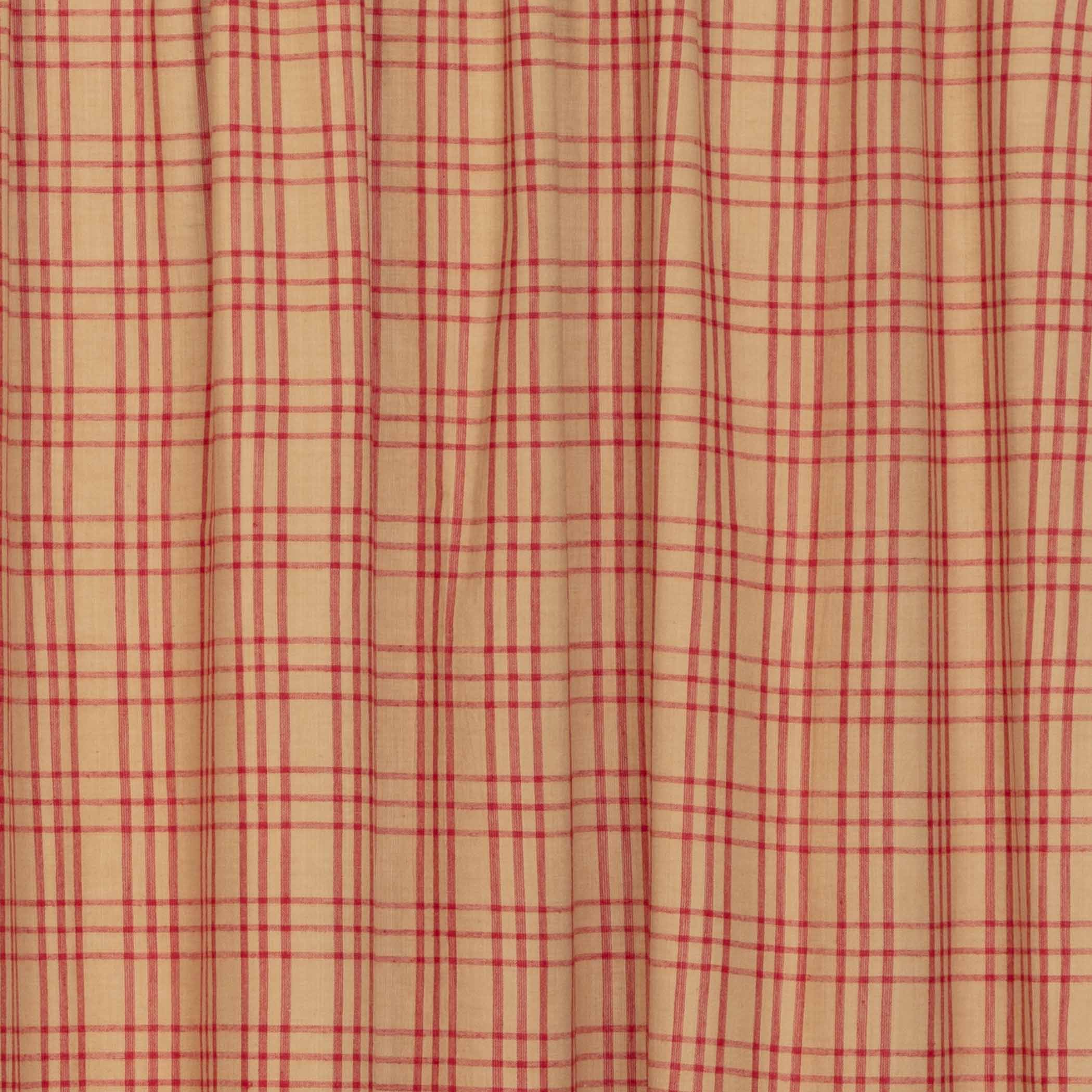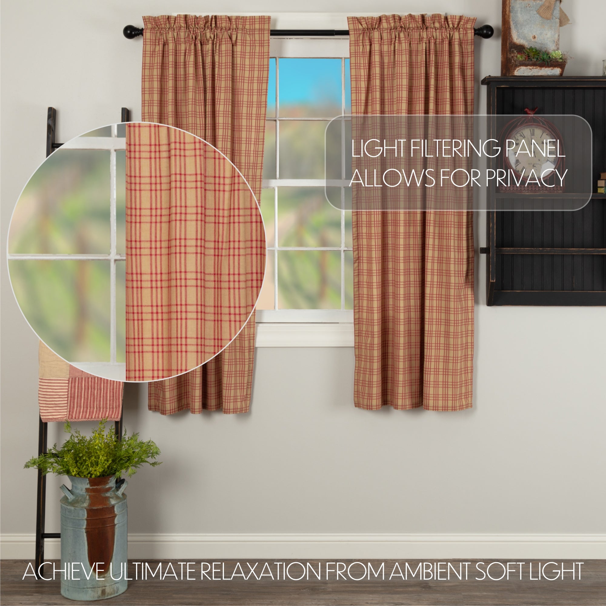 Size GuideCreate a clean, modern farmhouse look for your home. The Sawyer Mill Red Plaid Short Panel Set of 2 63x36 features beautiful classic red striping over a deep tan base to create a classic, rustic plaid. Includes matching tie backs and a soft, white cotton lining to filter sunlight and prevent fading. A rod pocket and loops offer easy hanging options.