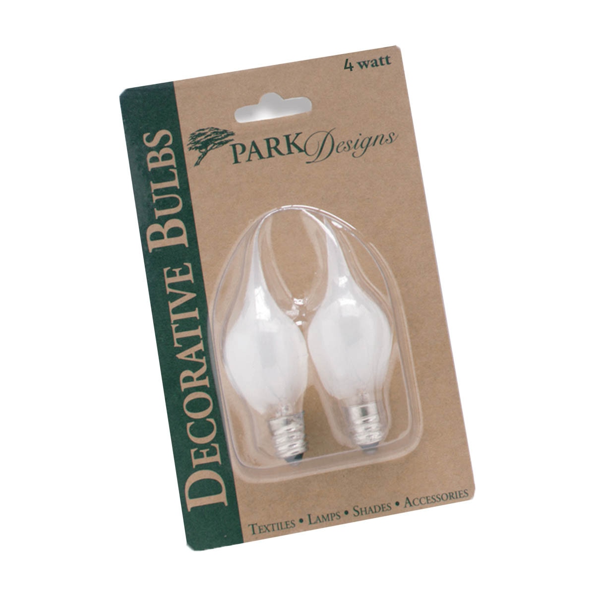 Light up your home with a warm, primitive glow! This set includes two 2-packs (total of 4 bulbs) of 4-watt silicone-dipped decorative bulbs by Park Designs. Each bulb is hand-dipped in soft, frosted silicone to create a cozy, flame-like glow—perfect for accent lamps, chandeliers, and nightlights.