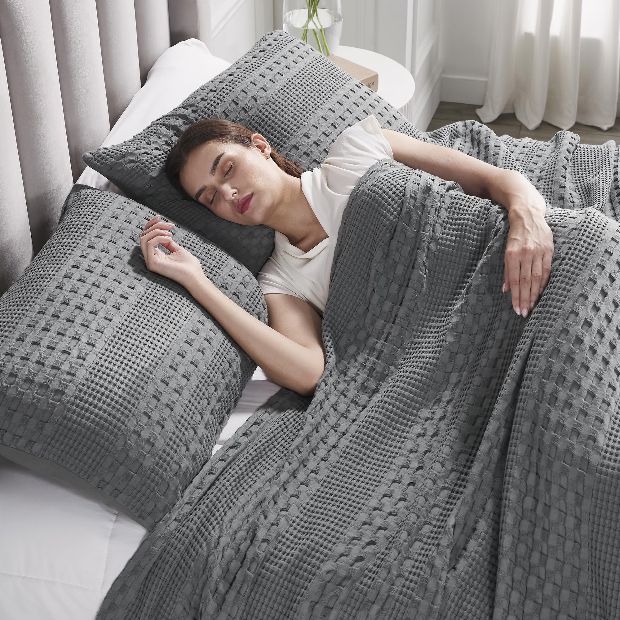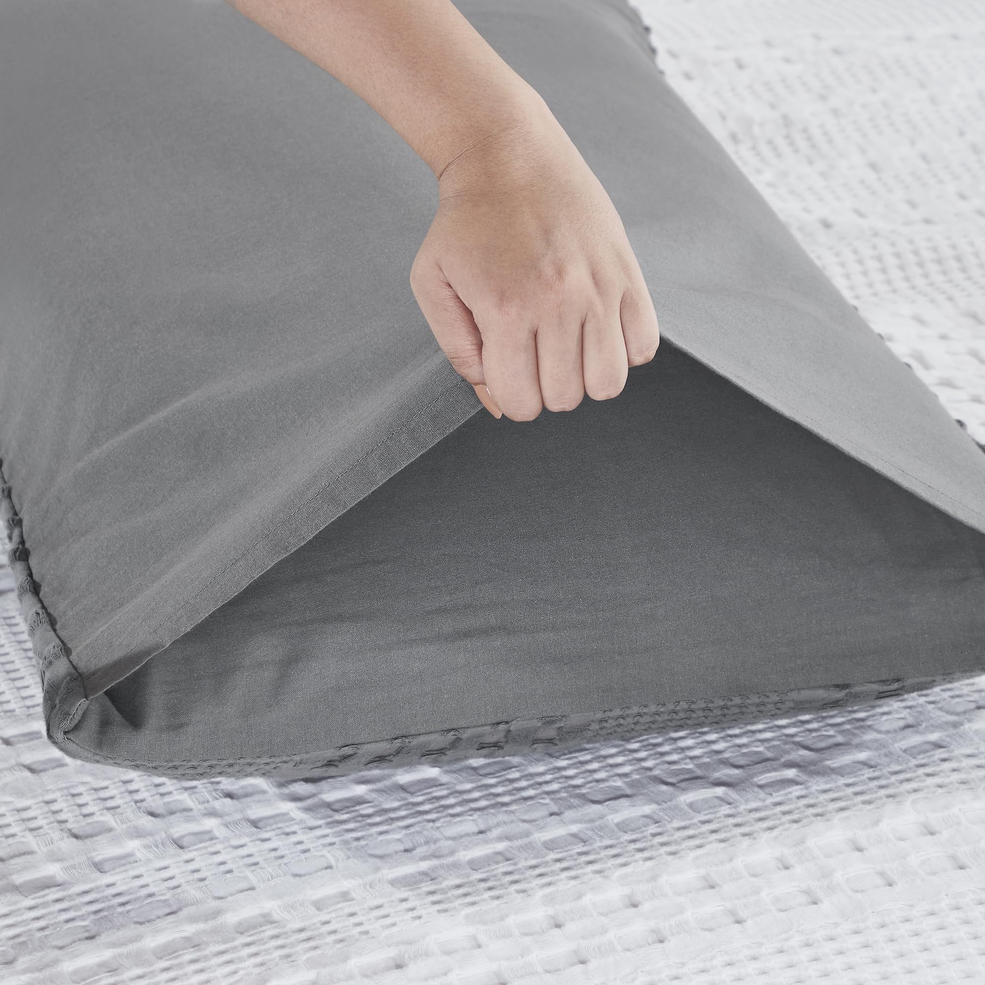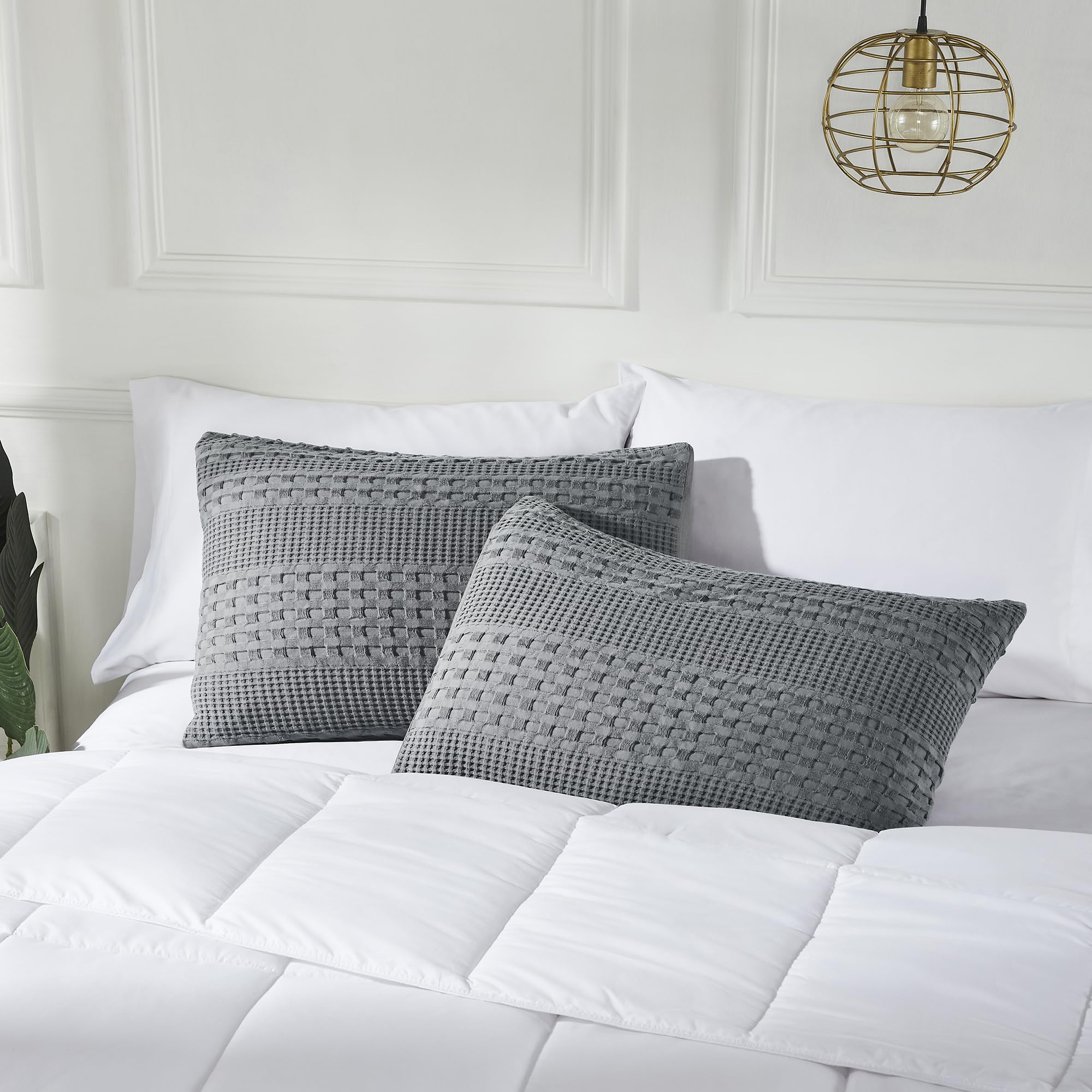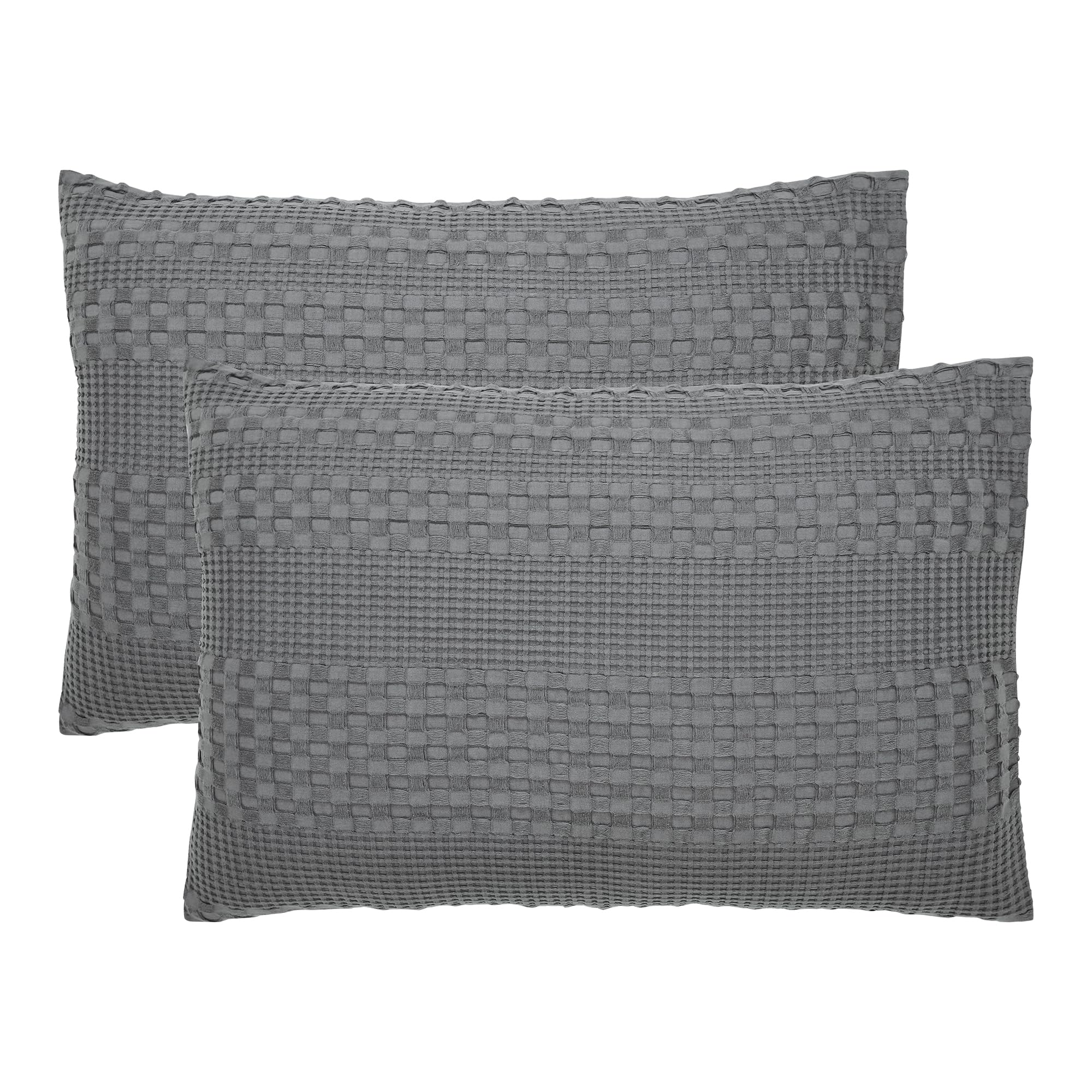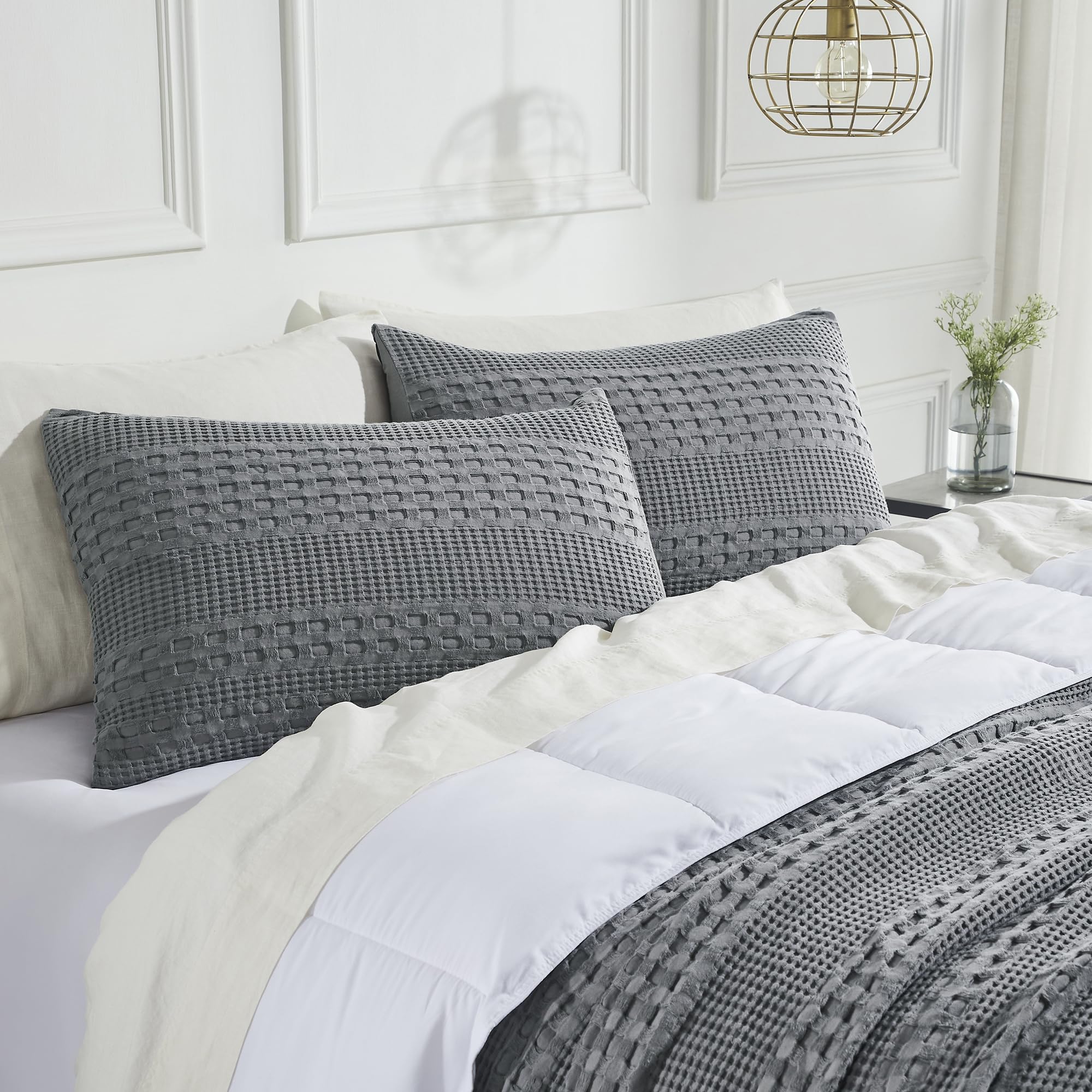 Size GuideIndulge in the serene comfort of the VHC Brands Waffle Weave Dark Gray King Shams (20x36, Set of 2), where rustic charm embraces tender elegance. Crafted from pure, high-quality cotton, these shams invite a touch of heirloom beauty into your sanctuary. Feel the intricate, unique waffle weave, a soft embrace against your skin, breathing life into your farmhouse or cottage-inspired haven. These pre-washed shams offer a truly lived-in comfort from the very first touch, promising a peaceful night's rest and a serene morning wake-up. Adorn your king-sized bed with the timeless allure of deep, dark gray hues, as these decorative pillow covers effortlessly blend with warm wooden accents and sun-drenched floral arrangements. The versatile, solid color drapes your pillows in understated sophistication, transforming your space into a harmonious retreat. Designed for both lasting beauty and easy care. Simply machine wash these enduring shams to keep them feeling fresh and looking inviting, ready to cradle you in their gentle embrace night after night.